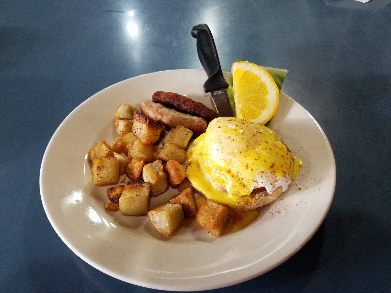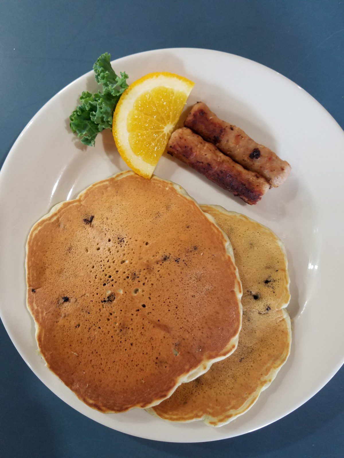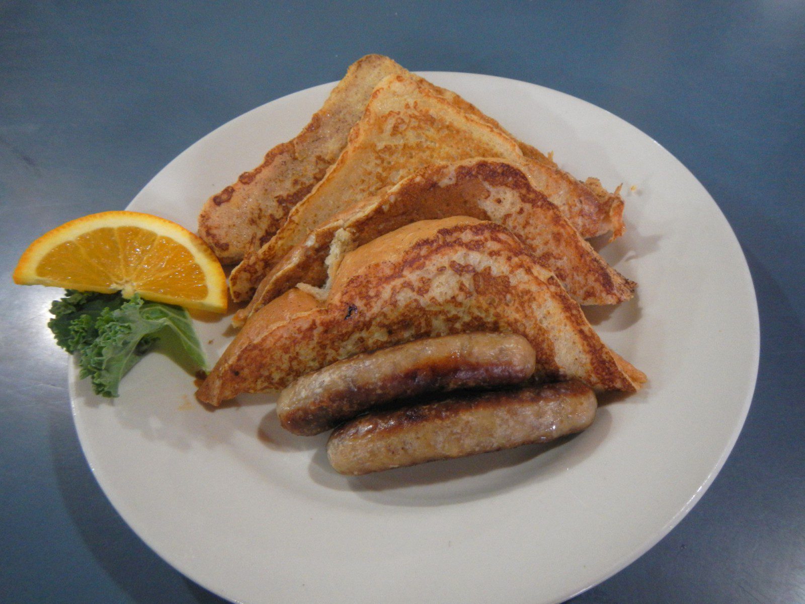 We have a rotating menu at breakfast: some mornings its eggs, bacon, home-fries, homemade toast; other mornings its pancakes, eggs benedict, and french toast. Oatmeal and cold cereal are also available. There is coffee, tea, juice, and milk for beverages.