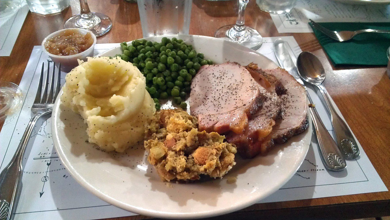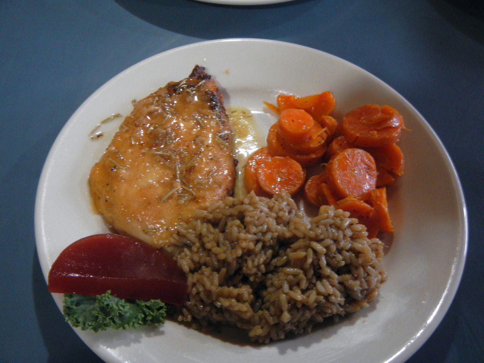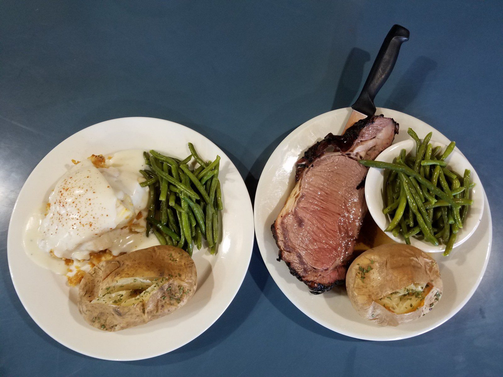 Dinners come with an appetizer, fresh bread, entree, and dessert. Depending on the night of the week is what the meal will be; for example roast pork, prime rib/baked stuffed haddock, and roasted turkey… just like having Thanksgiving almost every week!! Both meals have beverages of coffee, tea, water, iced tea, fruit punch, and lemonade.